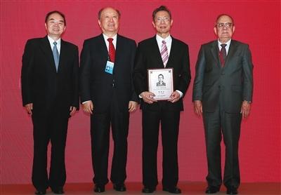 昨日上午,中国工程院颁发第十一届光华工程科技奖,呼吸病学专家钟南山(右二)获得成就奖。 新京报记者 吴江 摄