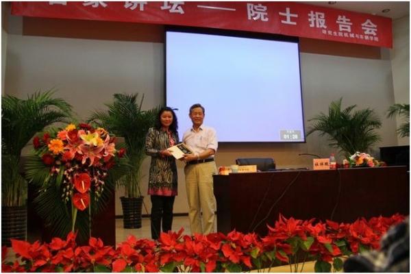 报告结束后,机械与车辆学院党委书记阎艳教授向杜祥琬院士赠送了精美纪念品,再次向杜院士关心和支持青年学生的成长成才,表示衷心的感谢。