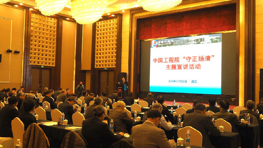2018年11月23日下午,中国工程院“守正扬清”系列宣讲活动在武汉举办了第三场报告会。周济名誉主席作了宣讲报告,陈左宁副院长通报了院士增选政策修订以及科学道德建设相关工作情况,李晓红院长作了讲话。报告会由钟志华副院长主持,70余位院士和部分工程院机关工作人员参加了报告会。