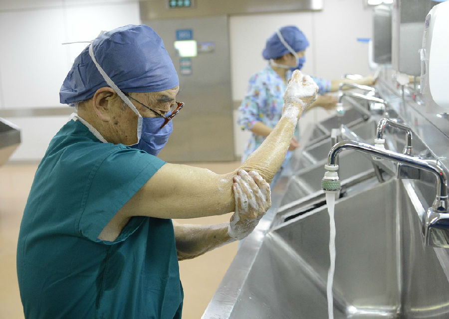 一个小时,两个小时……一连五个多小时过去了,黎介寿额头的汗水不停地往外流,手术服被汗水浸得紧紧贴在背上。成功做完手术时,他的腰疼痛难忍,被护士搀扶着走出了手术室。
