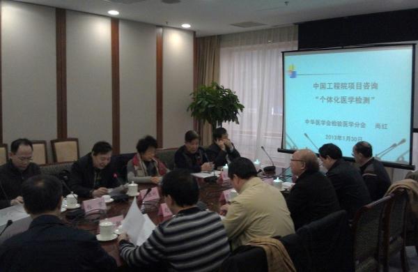 受中华医学会检验分会委托,中国工程院医药卫生学部于2013年1月30日在京召开“个体化医学检测建议书论证会”,会议由中国工程院医药卫生学部主任杨胜利院士主持,医药卫生学部程京、陈洪铎、付小兵、王琳芳、周宏灏、詹启敏院士以及来自卫生部临检中心、中国食品药品检定研究院、中国医科大学、重庆医科大学附一医院等单位的4位专家参会,卫生部医政司赵明钢副司长和中华医学会杨民副秘书长出席会议。