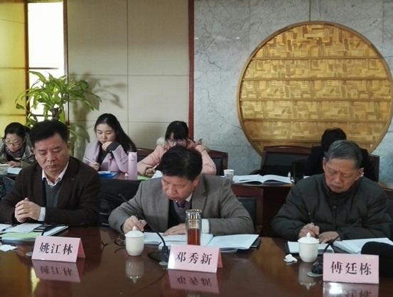会议由华中农业大学副校长姚江林主持,邓秀新院士代表华中农业大学致辞。随后,会议推举西北农林科技大学校长助理、研究生院常务副院长霍学喜教授担任专家组组长,专家组成员还有李崇光、朱信凯、陈池波、邹进泰、万俊毅、陈昭玖等。项目负责人傅廷栋院士、主要执笔人祁春节教授介绍了项目的基本情况、汇报了主要成果。