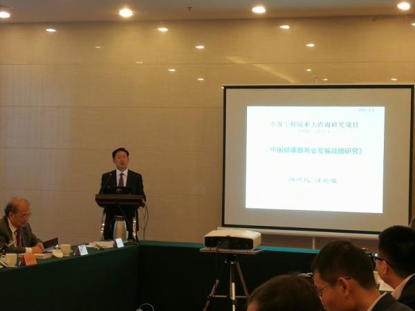 项目总负责人韩德民院士从战略意义、项目内容、问题对策和具体建议等四个方面向与会院士专家汇报了“中国健康服务业发展战略研究”的研究成果。韩德民院士指出,本项目是在我国由温饱型社会向全面小康社会迈进的时代背景下提出的,要服从于国家发展战略核心目标。在习近平总书记提出的创新、协调、绿色、开放、共享五大发展理念的引领下,在《“健康中国2030”规划纲要》提出的健康中国战略框架下,在以医疗为核心向以健康为核心转变的行业趋势下,中国健康服务业发展恰逢其时。在医疗服务不均衡、医疗保险补偿力度弱、基层卫生服务能力差、医疗资源配置不合理的环境下,发展健康服务业,从源头管理健康,是一种新理念、新思想。项目自2015年启动以来,取得了显著进展:开展实地调研49次、“美丽·健康·中国”全国巡讲16场,举办院士论坛2次,提交院士建议《关于“以加强县级医疗机构建设为抓手,切实促进健康中国战略中心下移” 的建议》1份。同时,作为科研理论的实践,项目启动了旨在下移国家优质资源帮扶基层、促进分级诊疗体系建设、功在千秋的“华佗工程”。项目通过对健康服务业相关概念的深入解读,结合医疗服务、健康管理、健康养老、健康保险、智慧健康、药品和医疗器械、中医养生康复以及体医结合等健康服务业分支行业的发展现状,提出了扩大医疗服务供给、重点推动医疗健康管理体系建设、支持健康养老服务业发展、积极发展多样化商业保险服务、推动智慧医疗发展、加快发展健身运动和医疗旅游以及推动家庭健康管理模式发展等建议。