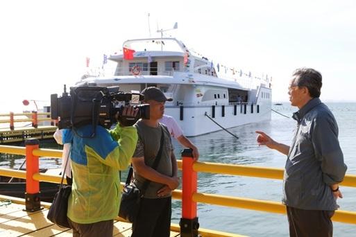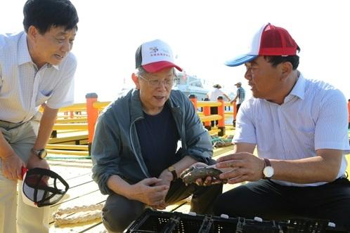 之后,专家组在唐启升院士带领下,现场观摩了荣成楮岛的现代海洋牧场,并接受了中央台记者的采访。