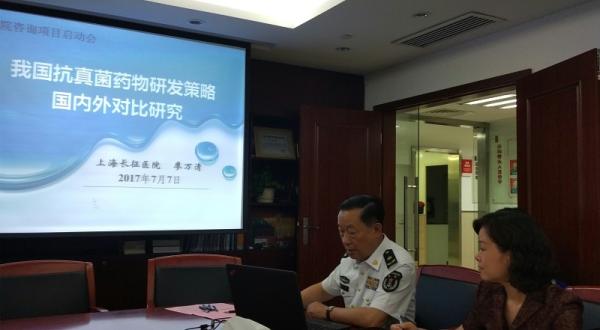 2017年7月7日,由廖万清院士牵头的中国工程院学部咨询研究项目“我国抗真菌药物研发策略国内外对比研究”项目启动会在上海召开。中国工程院廖万清院士、王威琪院士,第二军医大学戚中田教授、贺佳教授,昆明医科大学第二附属医院邓丹琪教授、郭芸副教授,军事医学科学院杨英副研究员等专家及上海长征医院部分项目组成员参加会议。项目负责人廖万清院士汇报了项目总体情况,包括研究背景、研究目标、分课题设置、研究思路与实施方案、研究进度安排和预期成果等内容。他指出,真菌病是严重威胁我国人民健康的疾病,特别是侵袭性真菌感染的发病率和死亡率在全球呈显著上升趋势。目前侵袭性真菌感染的临床干预主要依赖于抗真菌药物的应用,然而现阶段抗真菌药物的更新速度无法满足未来的临床需求,不断研发出新型安全高效的抗真菌药物是该领域重大的需求。本项目将从医学真菌病病原谱调查、现有药物再利用、海洋湖泊天然产物与中草药等四个方面开展研究,全面评估我国抗真菌药物研发现状,认真总结国外先进经验,挖掘我国在该领域的潜在优势,提出适合我国国情的、科学的抗真菌药物研发战略,为我国抗真菌药物研发战略决策提供科学参考,促进我国医学真菌学与相关药物研发水平的提升。