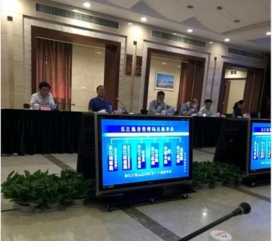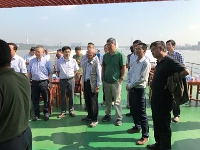 9月7日上午,调研组乘船赴长江武汉段现场进行航道治理工程踏勘,并听取长江航道局介绍长江干线航道基本情况、长江中下游航道建设情况、航道建设中的生态保护及航道整治案例(长江中游武桥水道航道整治工程)。