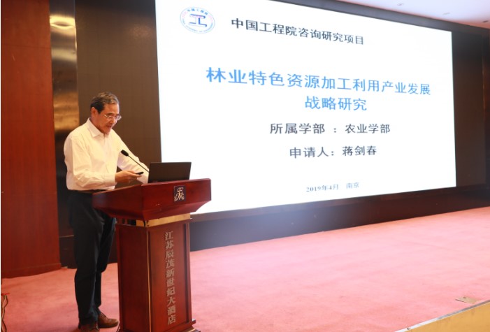 2019年4月19日-21日,由农业学部蒋剑春院士牵头组织的中国工程院咨询研究重点项目“林业特色资源加工利用产业发展战略研究”项目启动会在南京召开。中国工程院院士尹伟伦、陈温福、李德发、宋宝安、曹福亮、陈坚、宋湛谦、蒋剑春,中国工程院二局局长高中琪,国家林业和草原局科技司巡视员厉建祝,中国林科院院长刘世荣、副院长储富祥,江苏省林业局副局长钟伟宏,项目特邀专家国家林业和草原局生态保护修复司司长赵良平教授级高工、南京林业大学副校长勇强教授、云南省科技厅农村科技服务中心主任高波研究员等应邀出席会议。会议由工程院二局农业学部办公室主任黄海涛主持。