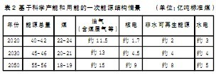 2020年、2030年、2050年我国基于科学产能和用能的一次能源结构约为如下情景(表2)。