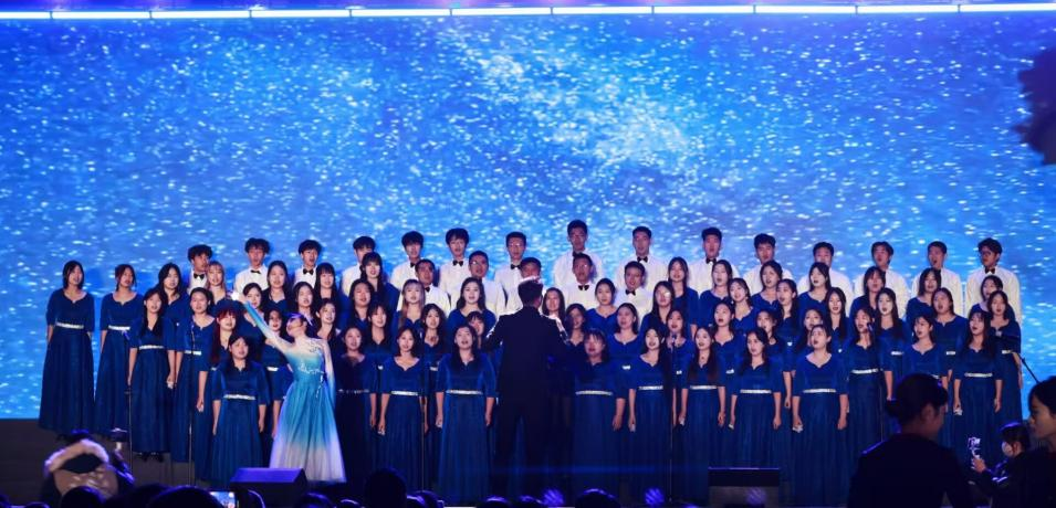 作为开场合唱团,教师教育学院一首《我们走在大路上》铿锵有力,正式拉开本次合唱节帷幕。歌声中传递了中国人民在社会主义建设道路上意气风发、斗志昂扬的精神状态,激发学生的爱国热情与奋斗精神。随后全场灯光黯淡,教师教育学院师生共同演绎歌曲《夜空中最亮的星》,献给齐鲁师范学院莘莘学子。鼓励学生在面对困难与挑战时,坚定信念,砥砺前行,保持积极向上心态,勇毅追求个人梦想。