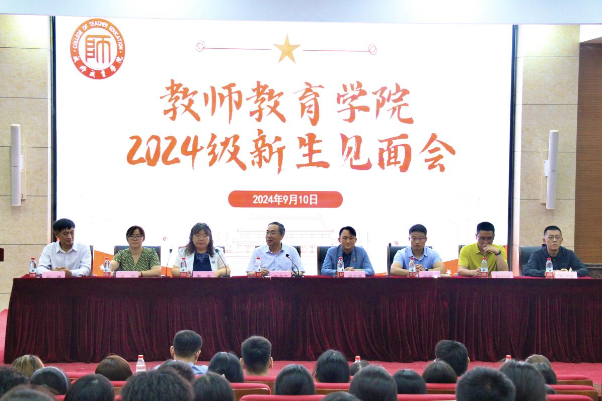 为热烈欢迎2024级新生,同时庆祝第40个教师节的到来,9月10日晚,教师教育学院2024级新生见面会在章丘校区第一学术报告厅成功举行。教师教育学院院长毕诗文、党委书记姜东菲、副院长李爽、党委副书记栾毅之、副院长王蕾、范勇、院长助理徐明波、团总支书记李炜琛、2024级辅导员袭著高、柴通及学院全体辅导员和2024级新生参加。会议由李爽主持。