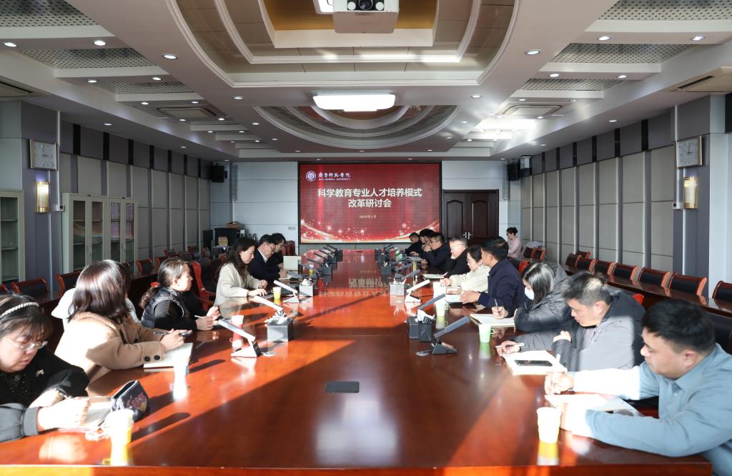 为深入探讨科学教育专业人才培养的创新路径,推动教育质量的全面提升,1月13日下午,我校在章丘校区第一会议室举办了主题为“科学教育专业人才培养模式改革”的研讨会。会议由学校副校长孙正主持,学校党委书记林松柏,组织部、教务处、人事处负责人,教师教育学院、物理与电子工程学院、化学与化工学院、生命科学学院、信息电子工程学院、地理与旅游学院、数学学院、文学与历史发展学院分管教学工作的副院长,以及科学教育专业全体教师出席会议。
