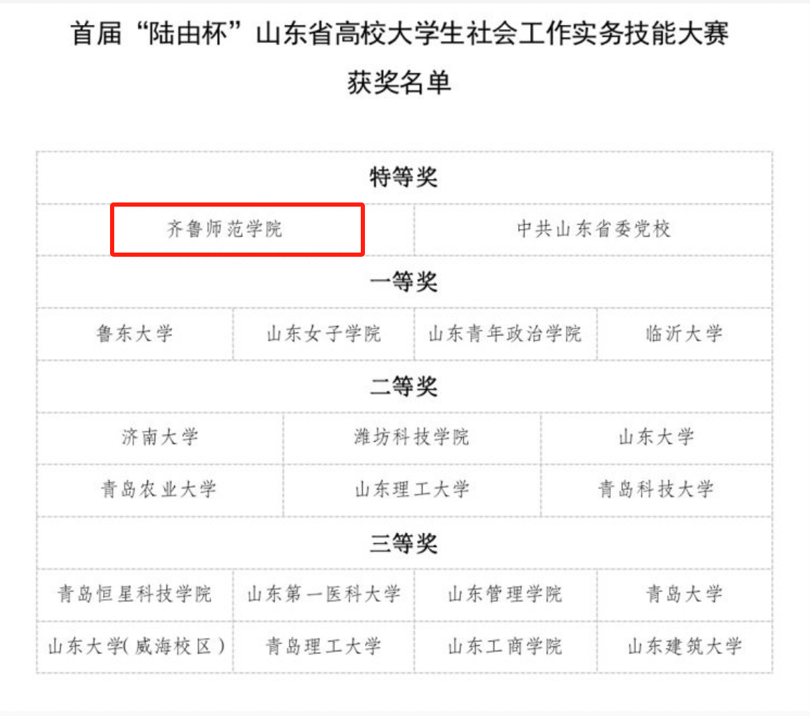 4月20日,我校教师教育学院社会工作专业学生在首届“陆由杯”山东省高校社会工作实务技能大赛中,在参赛的全省19所高校中脱颖而出,以总成绩第一名的佳绩获得特等奖。