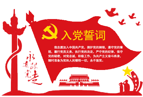 入党誓词:我志愿加入中国共产党,拥护党的纲领,遵守党的章程,履行党员义务,执行党的决定,严守党的纪律,保守党的秘密,对党忠诚,积极工作,为共产主义奋斗终生,随时准备为党和人民牺牲一切,永不叛党。