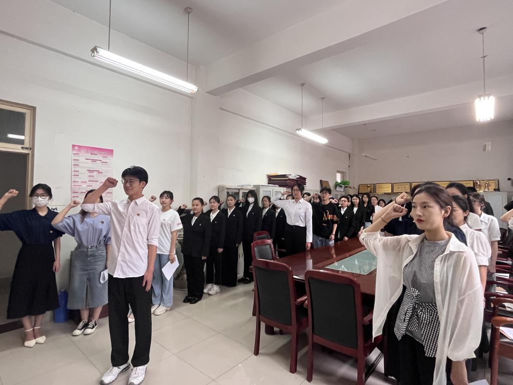 活动伊始,由毕业生党员李京儒带领参加主题党日活动的全体党员重温了入党誓词。誓言铿锵,激荡着坚定的信仰。全体毕业生党员们在铮铮誓言中铭记初心,砥砺前行,把爱国主义情怀转化为实际行动,争做新时代奉献者、奋斗者。