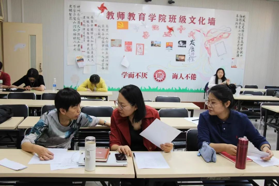 在课堂教学环节,参赛学生们以饱满的热情和扎实的专业知识,为现场观摩同学和评委老师呈现了一堂堂精彩的教学课。他们有的善于引导同学们思考回答,有的善于启发式教学。教学形式经典,教学风格多样,展现了教师教育学院师范专业学生出色的专业技能,也展现了未来教师的魅力和风采。