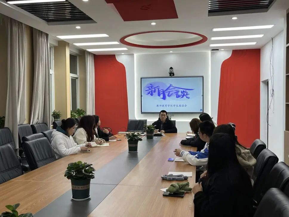 2023年11月6日晚,教师教育学院在二教B106会议室召开心理学专业学生代表“新月会谈”,会议由团总支书记李炜琛主持,21、22、23级心理学各班3名学生代表参会。