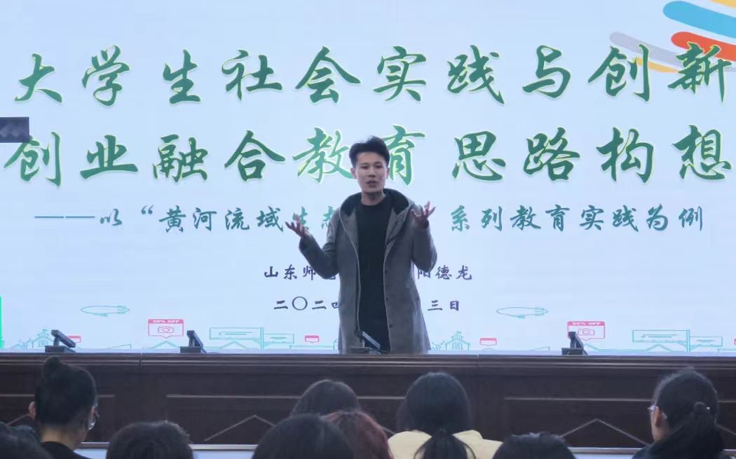 随后欧阳德龙以“黄河流域生态保护”为主线,通过聚焦守护黄河生态志愿服务项目,巨细靡遗地分享实践项目推进的全程,从选题内容、思维方法、参考文献到预期成果,既进行理论指导,又有实操性极强的步骤拆解,为学生们铺就通往创新创业与社会实践融合推进的可行性路径。互动环节中,同学们围绕团队组建、项目实施等问题踊跃提问,欧阳德龙老师倾囊解惑,为学生们拓宽了创新思路。