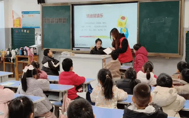 在第二场情绪管理课堂中,志愿者李鑫扮演“知心姐姐”,以温暖亲切的方式,带领孩子们走进情绪的世界,学会倾听与表达。