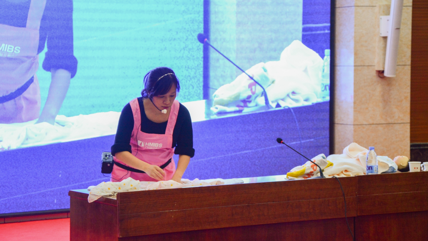 徐千惠教授用婴儿模型、洗浴工具等物品向同学们进行了全面的说明和演示。首先从基础性问题开始讲起,讲述了新生儿抱姿、婴儿沐浴用品及其最佳用法、适宜水温以及脱衣的正确方法。随后教授又仔细地向大家演示了婴儿沐浴的全过程,按照特定的顺序清洗头部和身体是沐浴的关键。徐教授在讲述时旁征博引,并在演示过程中提醒大家避免一些错误做法,讲座妙趣横生,同学们也积极地同教授互动,认真地听讲并记录。