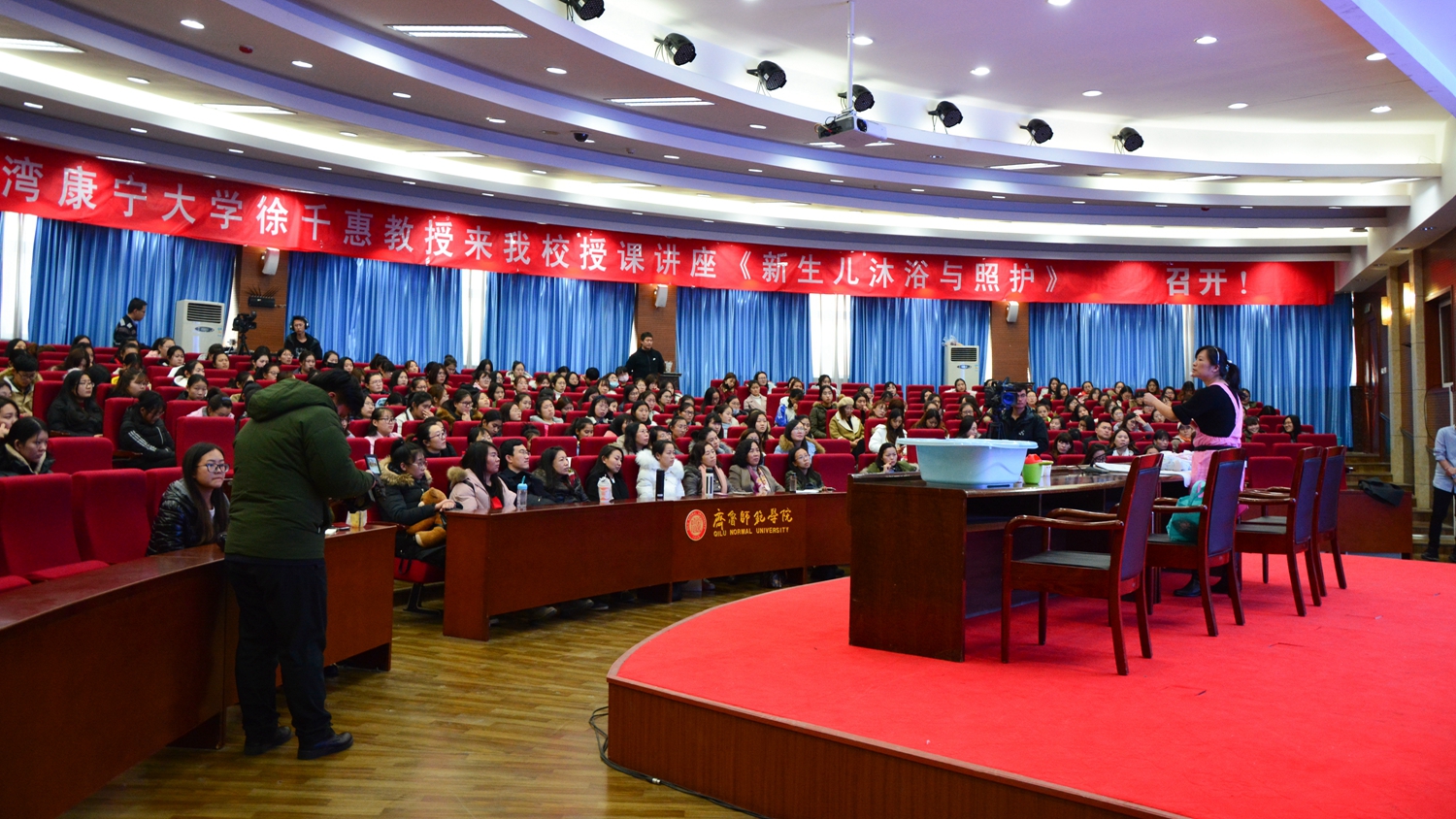 为提高学前教育专业学生对婴幼儿专业知识的掌握,我院特邀请来自台湾康宁大学的徐千惠教授于2017年12月6日下午,开设了《新生儿沐浴与照护》的专题讲座。院长赵延银,2017级学前教育普通本科班、学前教育春季本科班以及学前教育本科(3+4)班的学生到场学习。