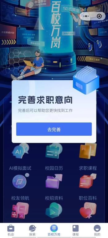 进入后根据提示进行【完善求职意向】,即可开始进行相关企业和岗位的选取