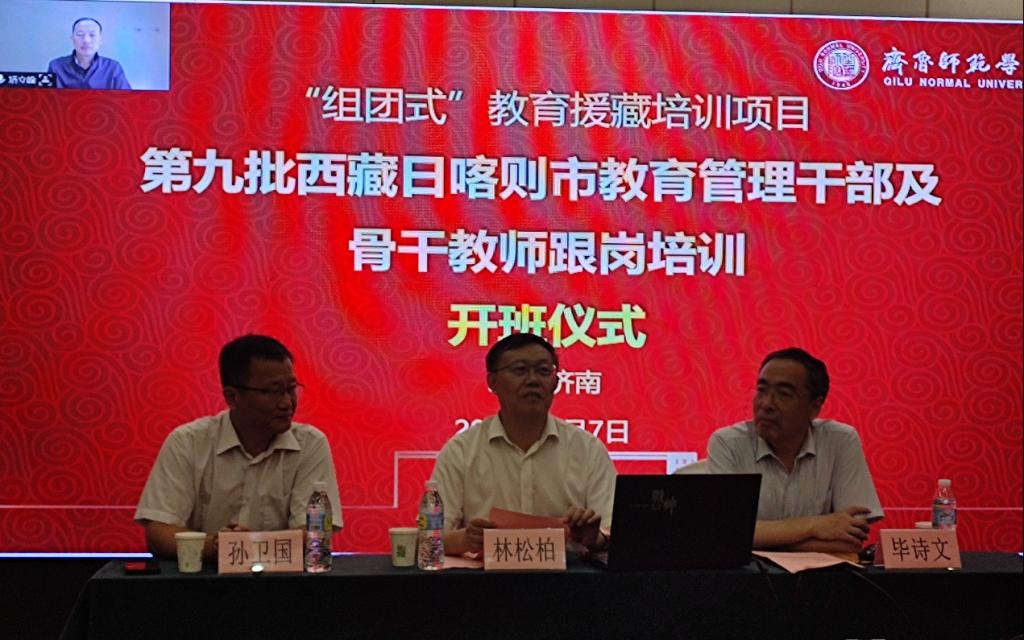 9月7日,由山东省教育厅和日喀则市教育局主办的“组团式”教育援藏培训项目第九批西藏日喀则市教育管理干部及骨干教师赴山东省跟岗培训班开班仪式在齐鲁师范学院顺利举行。齐鲁师范学院党委书记林松柏,基础教育服务中心(援疆教育中心)主任孙卫国出席开班典礼。山东省第十批援藏干部、日喀则市教育局党组成员、副局长矫立峰通过视频连线的方式参加了开班仪式,典礼由教师教育学院院长毕诗文主持。