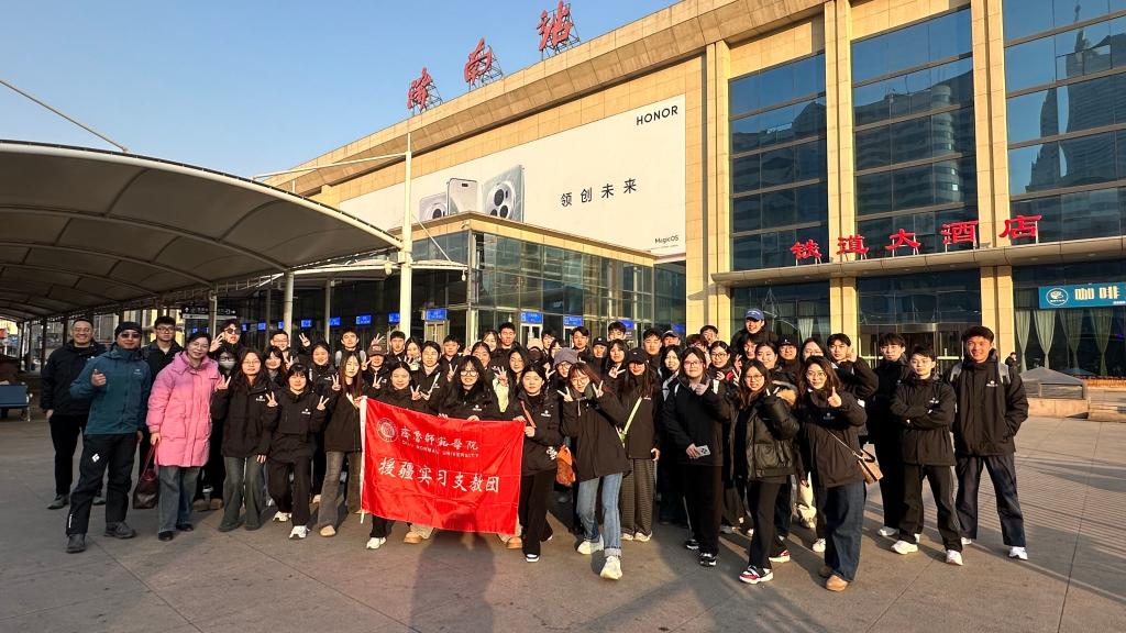 2月26日清晨,在全校师生的期待与祝福中,第七批援疆实习支教团顺利启程,踏上前往新疆喀什麦盖提县的征程。教师教育学院的冯添林、王俊腾、李庆楠、刘译方、潘剑桥、刘丰源同学积极响应号召,成为了此次支教团的成员。