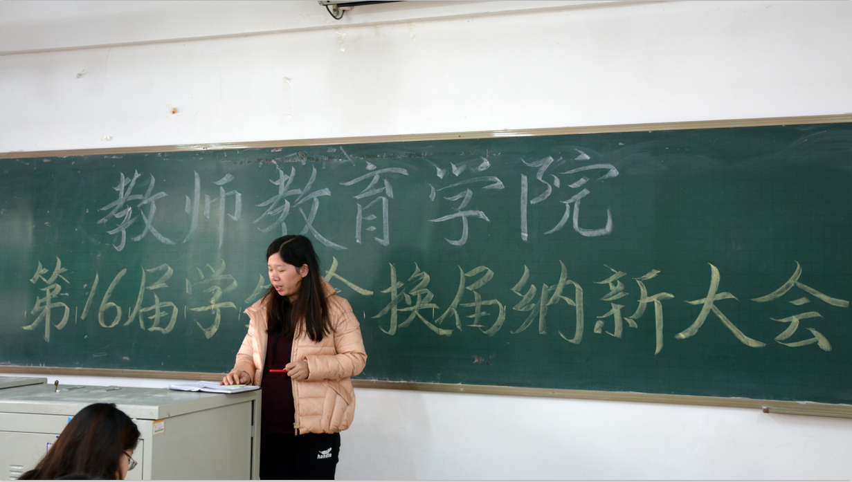 会上,王戈弋老师宣读教师教育学院第16届学生会全体成员名单。随后,由第15届学生会主席王瑞做工作总结,并对新一届学生会给予了很高期望。我院党总支副书记赵青 、团总支书记孙建凯、辅导员王戈弋为第15届学生会代表颁发聘书。新任学生会主席刘冰洁发表任职讲话,她表示愿意与新一届学生会成员为学生会的建设共同努力。